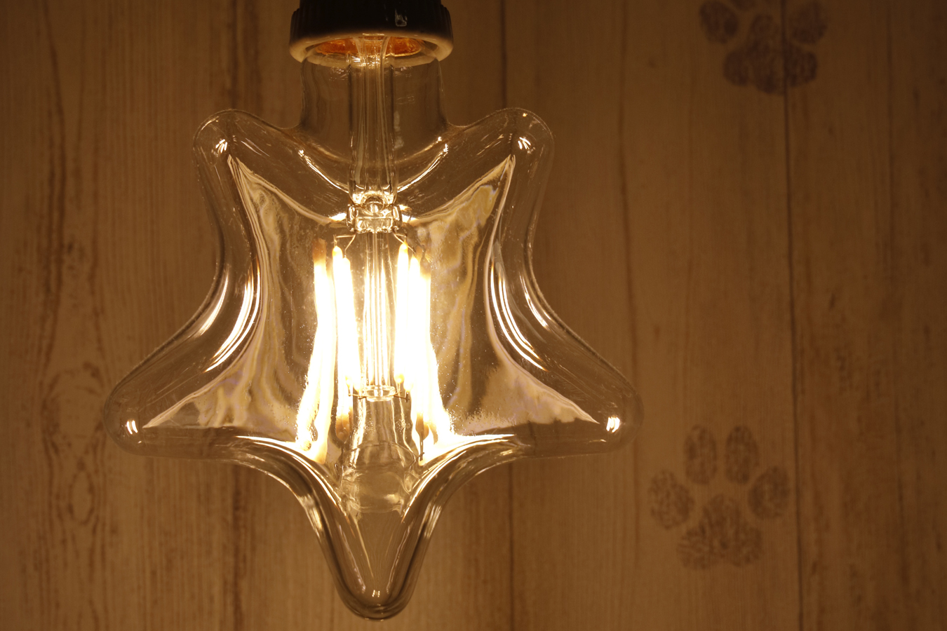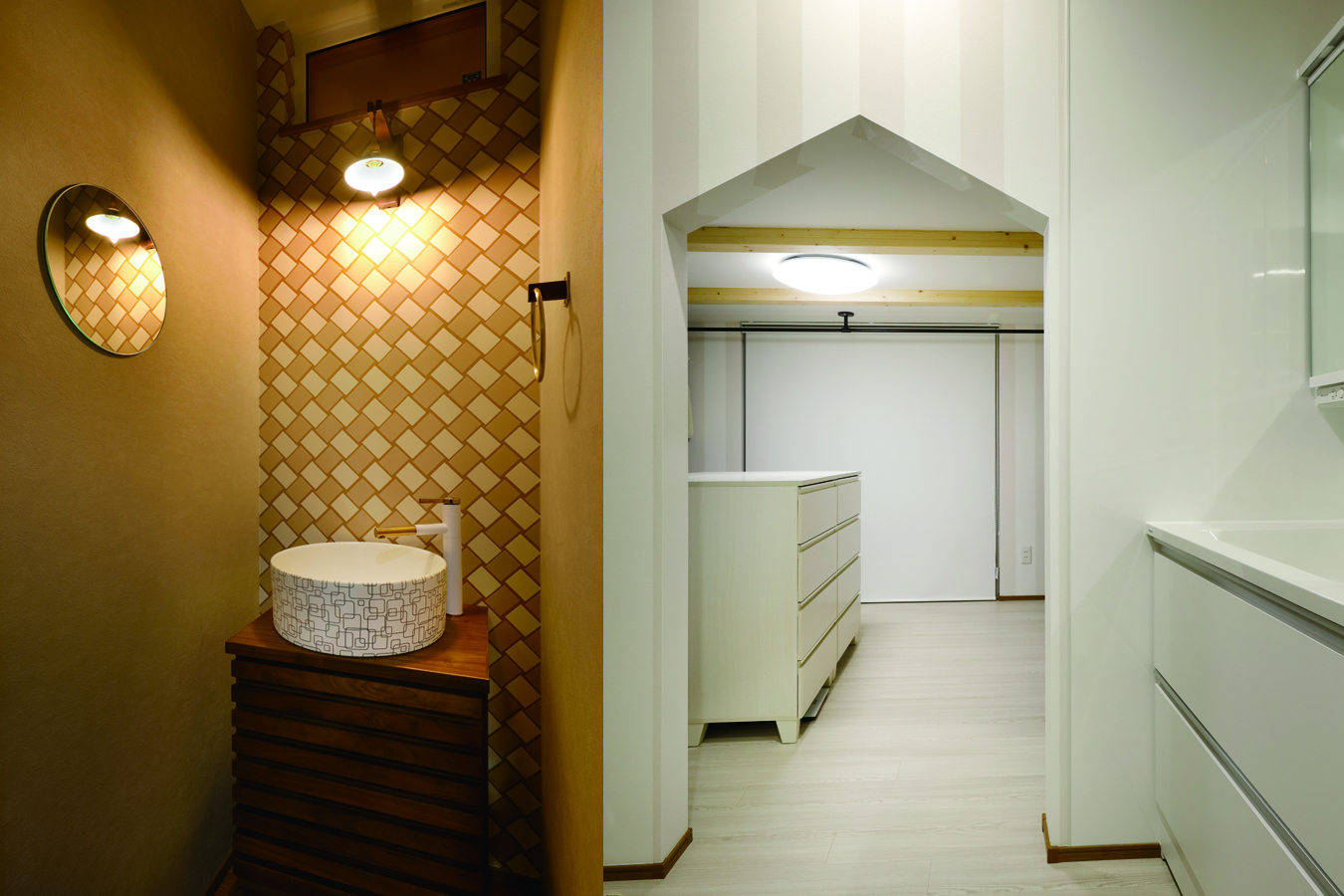 子供部屋はワンちゃん・ネコちゃんの肉球の壁紙、そして星形のライトはお子供様も喜ぶデザインです。寝室はアクセントクロスと照明器具がインパクトがある仕上がりで、唯一無二の住宅が完成しました。